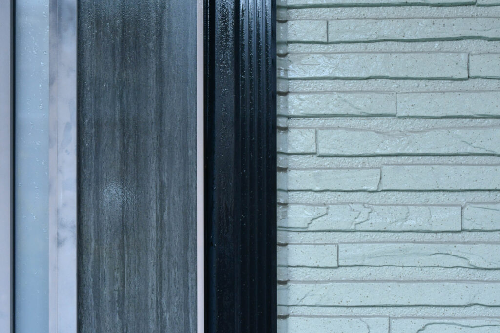 縦向きに溝がある柱は縦方向に、横向きに溝がある外壁全体のブロックは横向きに洗浄機を動かし、隙間汚れも見逃しません。
