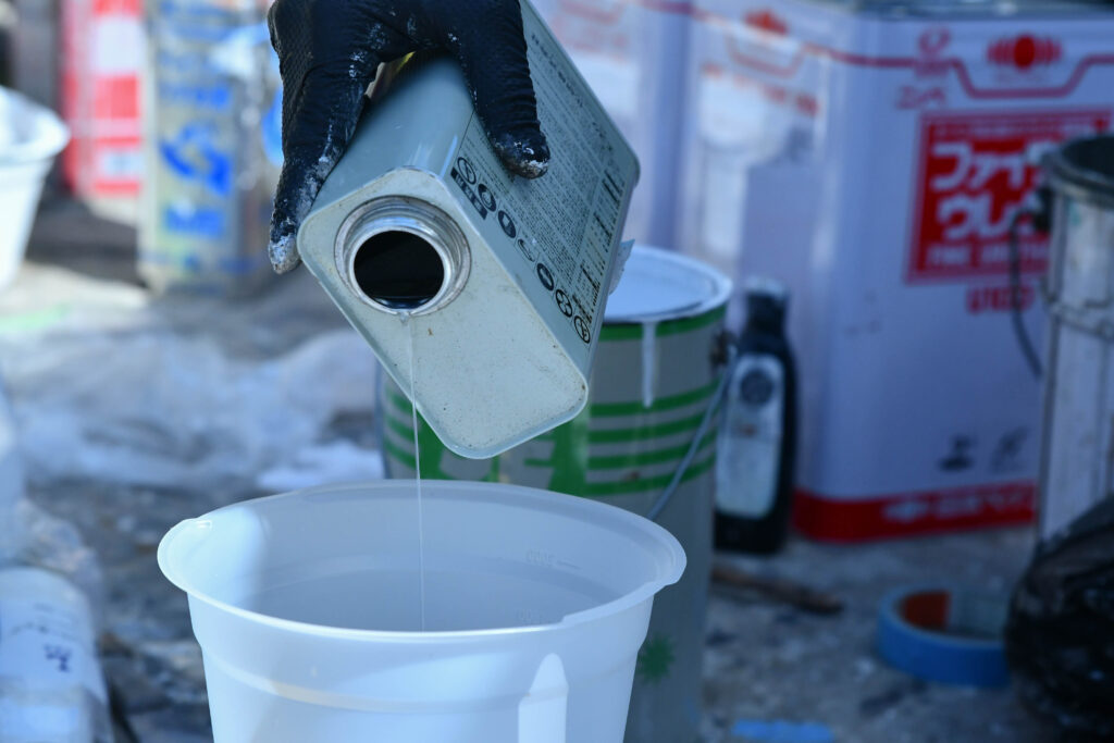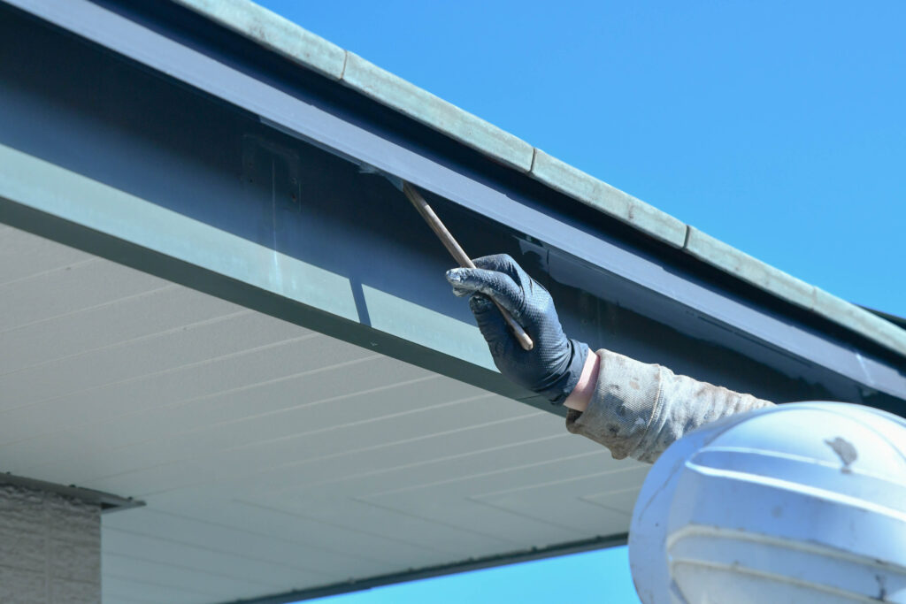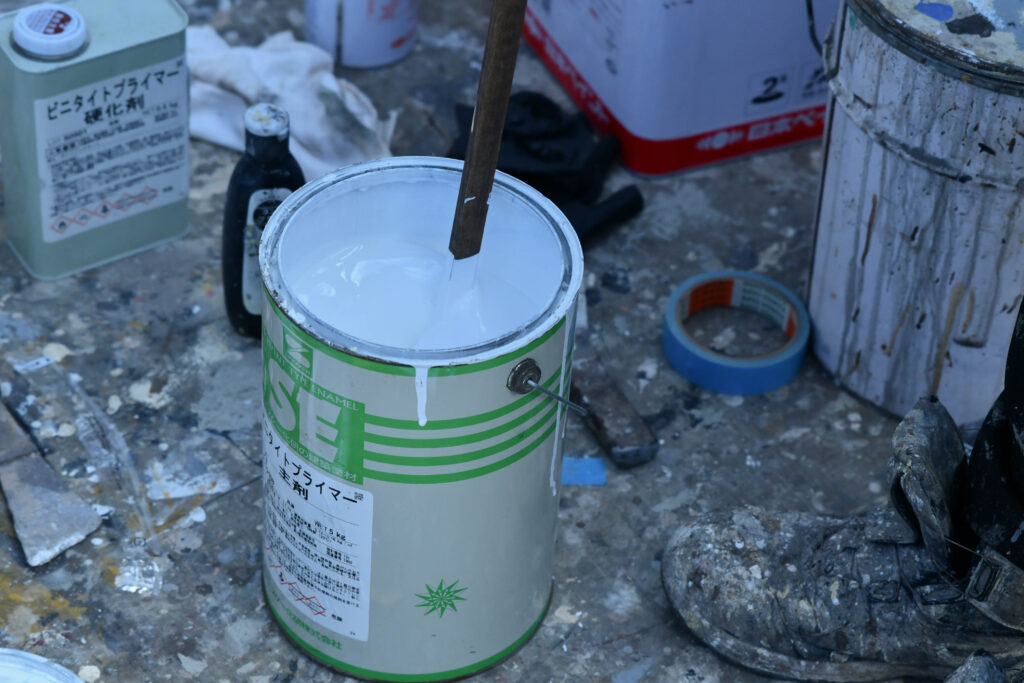 幕板はアルミ製、破風はビニールが巻かれているタイプのものだったため、それぞれに対応した下地を調合し、使い分ける必要があります。