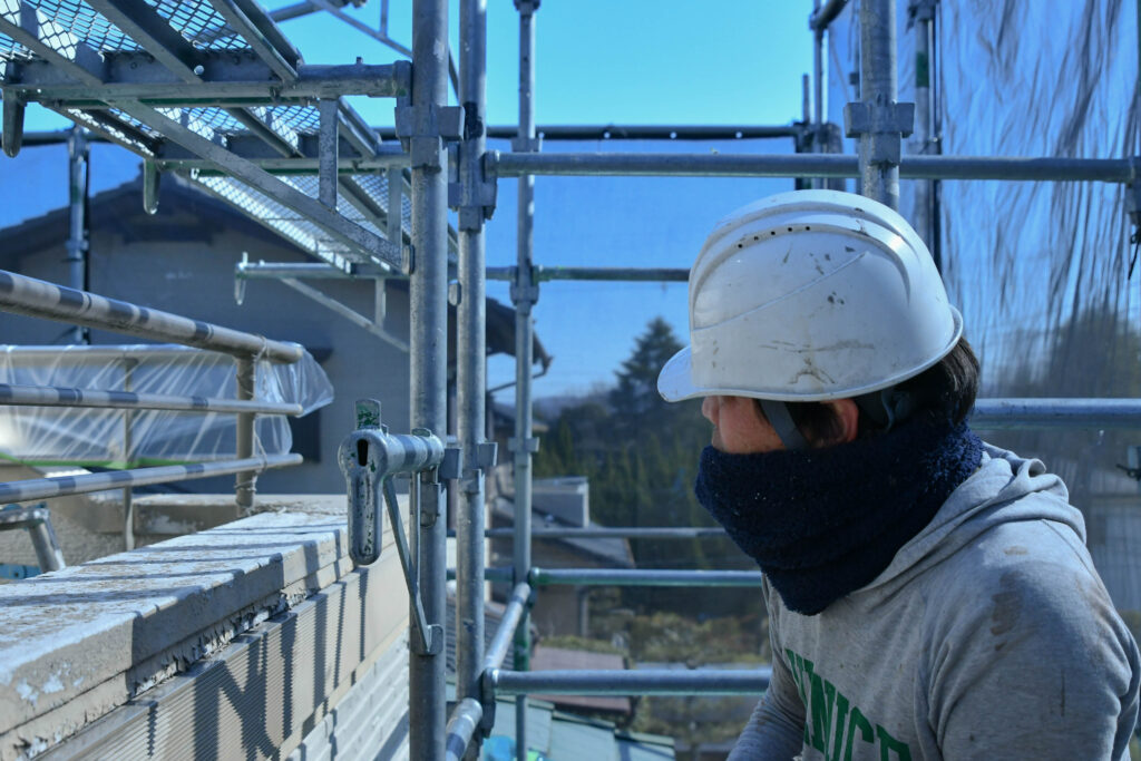 Fs様邸の外壁工事が進んでいます。